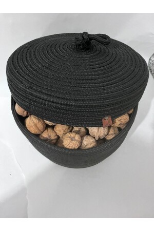 سلة MNZ مع غطاء جوتي - منسوجة يدويًا - سلة متعددة الأغراض - منظمة حمام ومطبخ