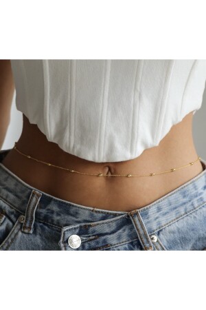 MNZ-Tarnishable 2 قطع ذهبية لون ليني سلسلة الخصر وجواهر الجسم - رقبة الخصر