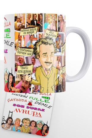 سلسلة جانبية من طراز MNZ-أوروبية بورهان ألتين توب مطبوعة بيضاء 100% مغ مغ من البورتسلين و MDF Coaster AvrupaYakası