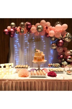 Pudra Pembe Gold Konfetili Balon Zincir Seti 100 Adet