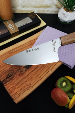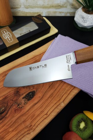 سكين طاهي مصمم من الشرق الأوسط (MNZ-Far Eastern) يسمى سانتاكو كبير. يبلغ طول المنتج إجمالي 32.5 سم. يبلغ طول اليد 14 سم
