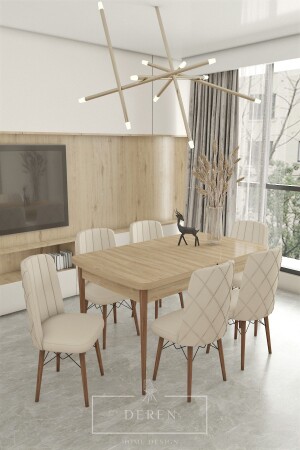 سلسلة MNZ-Astera طاولة مُتوسعة + 6 قطع كريم صبية وجه منتجات المطبخ غرفة المعيشة غرفة الطعام مجموعة