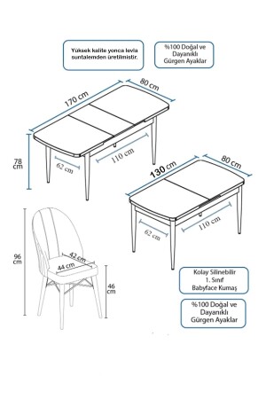 منز-ديرين المنزلية أستيرا سلسلة 80x132 طاولة المطبخ و طاولة الطعام مجموعة + 6 مقاعد محتويات الحزمة: 6 مقاعد + 80x132 طاولة