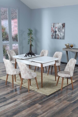 سلسلة MNZ-Barni Plain White Extendable Dining and Kitchen Table Set مع 6 مقاعد - بارني الارضي-06