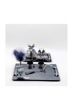 Lüx Kare Kelebek Aksesuarlı Paslanmaz Çelik 6’lı Gümüş Kahve, Çay, Dekoratif Sunum Servis Tepsisi MZKBK667