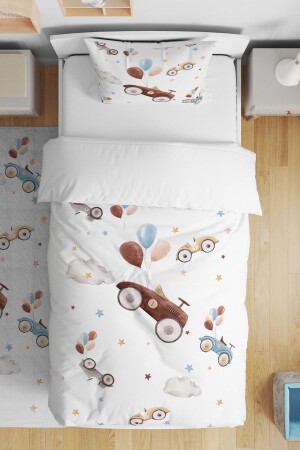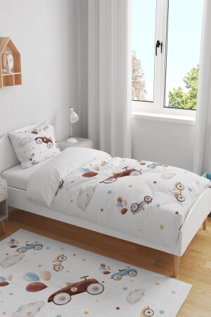 Rally Yarış Arabalı Desenli Mavi Çarşaflı 2 Yastık Kılıflı -Ranforce Tek Kişilik Nevresim Takımı