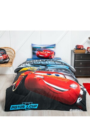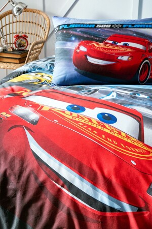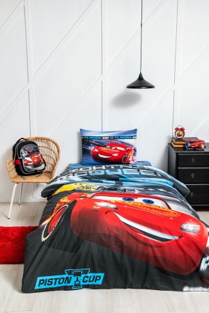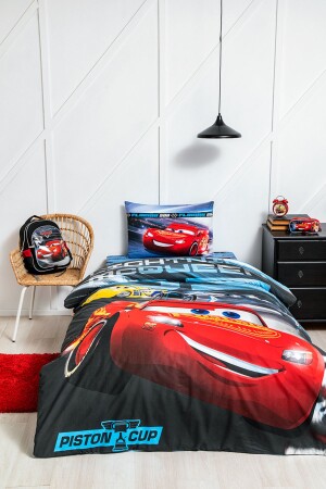 Rally Yarış Arabalı Desenli Mavi Çarşaflı 2 Yastık Kılıflı -Ranforce Tek Kişilik Nevresim Takımı