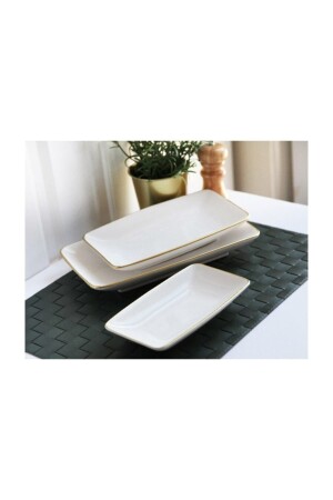 سيراميك MNZ مستطيل 3 قطع لوحة القارب الذهب الأبيض 3 BPA الحر الحر لوحة القارب البيج البورسلين