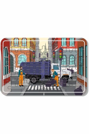 شاحنة القمامة و شاحنة الإطفاء و المركبات 54 قطعة 4 قطع لعبة اللغز الخشبي مجموعة Puz1708