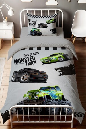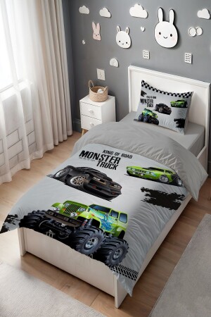 Rally Yarış Arabalı Desenli Mavi Çarşaflı 2 Yastık Kılıflı -Ranforce Tek Kişilik Nevresim Takımı