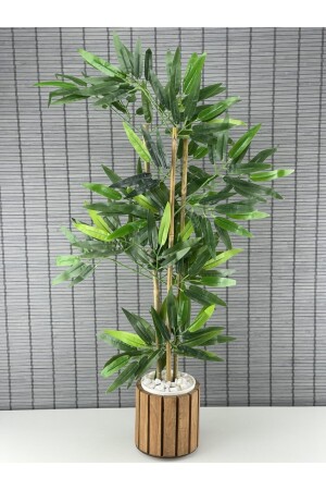 شجرة الخيزرانة المزخرفة ذات الأوراق الكثيفة الاصطناعية من MNZ مع وعاء خشب 3 جذوع 80 سم