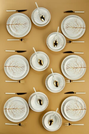شجرة من الذهب من MNZ Lux Ceramic 24 Piece عشاء مجموعة 6 أشخاص ، عشاء مجموعة من الذهب من الشجرة