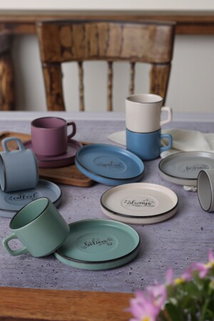 شعار "MNZ-Rainbow" مجموعة الشاي المزدوجة 12 قطعة لـ 6 أشخاص