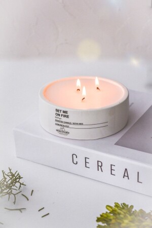 شمعة من الكنيس والفاحة ذات الروائح العطرية - شمعة من الصويا الخضار المزخرفة مع وعاء الخرسانة