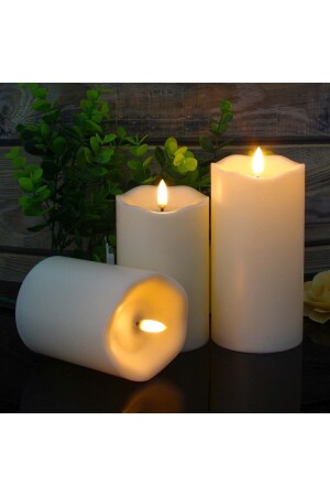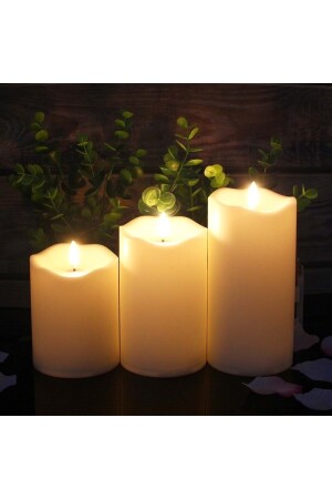 شمعة LED بلا شعلة من نوع MNZ حجم كبير مجموعة من 3 مع التحكم عن بعد