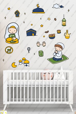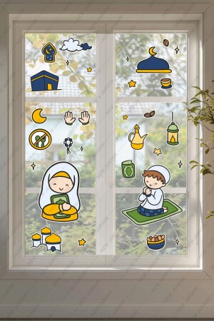صلاة الأطفال رمضان المطبخ المجموعة - رمضان موضوع الزجاجية ديكورات الحائط الأطفال الحائط