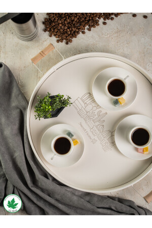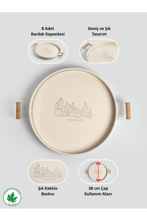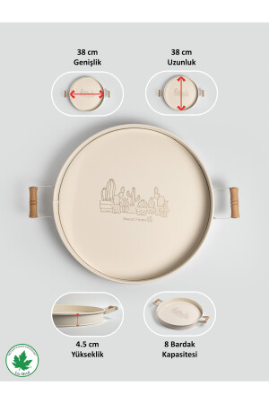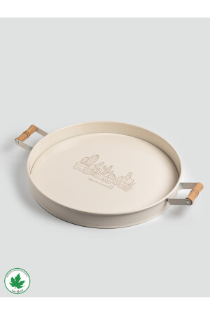 3 Lü (51- 37- 30 CM) Ahşap Kulplu Metal Tepsi Çay Tepsisi Kahve Tepsisi Sunum Tepsi Seti