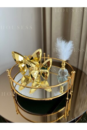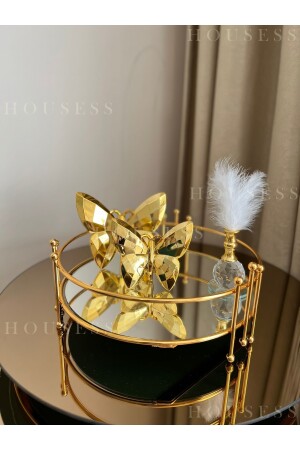 مكونات من غلافات من الذهب: قطرها: 26 سم / عمق: 4 سم مجموعة من 2 فراشة من الذهب: حجم كبير: 13.5 × 11.5 سم / حجم صغير: 10.5