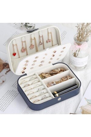 صندوق المجوهرات المستقيم 3 قطع مجوهرات منظمة الخاتم الوقود القلادة منظمة السفر البحرية الأزرق