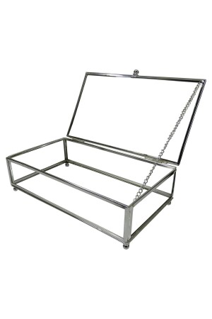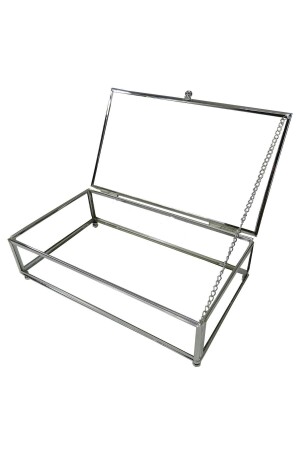 صندوق عرض معطوف من معدني صغير من الزجاج من MNZ مع غطاء حلوى الشوكولاتة والجواهر صندوق 25x14 سم فضة CCDMEVBNTM08756