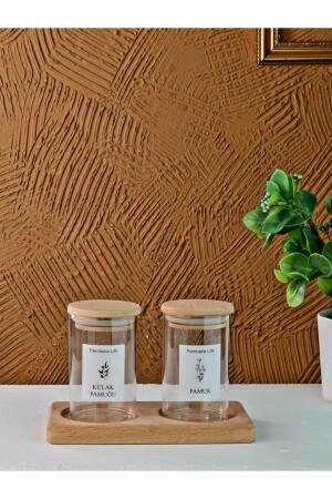 مجموعة من 2 صناديق زجاجية من القطن مع صانع