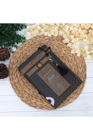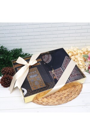 صندوق من المواد المعدنية من المواد المعدنية + القرآن المتوسط الحجم + سجادة الصلاة + لؤلؤات الصلاة - الكعبه