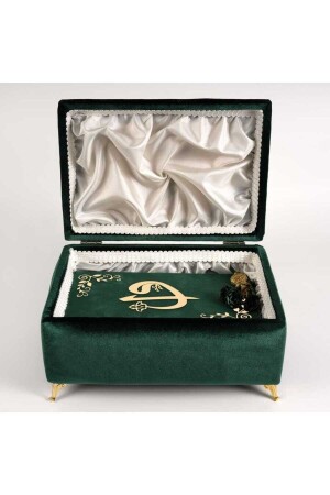 صندوق من طلاء من طلاء MNZ - سجادة الصلاة + لؤلؤ الصلاة + مجموعة هدية القرآن (المتوسط الحجم - الخشية - الخضراء - Elif-