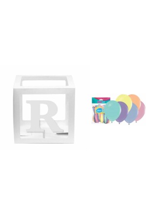 صندوق MNZ شفاف أبيض بحرف R ومجموعة بالون