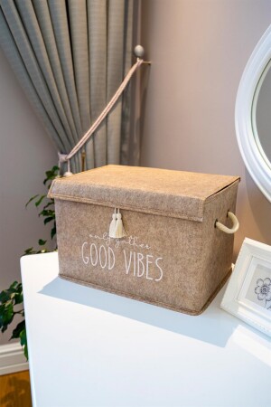 Bej Kapaklı Dolap İçi Çamaşır Oyuncak Düzenleyici Katlanır Saklama Kutusu Hurç 48x40x30