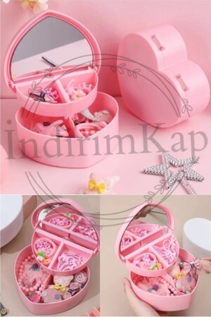 وصف المنتج MNZ صندوق تخزين المجوهرات في شكل قلب تصميم طبقتين - مناسبة لتخزين مجوهرات مختلفة مظهر لطيف - مرآة تضمنت - صغير