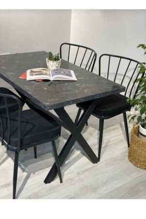 MNZ-4 قطع الكراسي الشريطية طاولة الشريط مجموعة - الأسود الرخام طاولة نمط