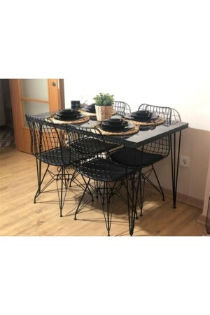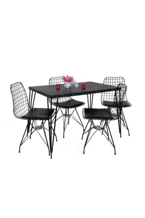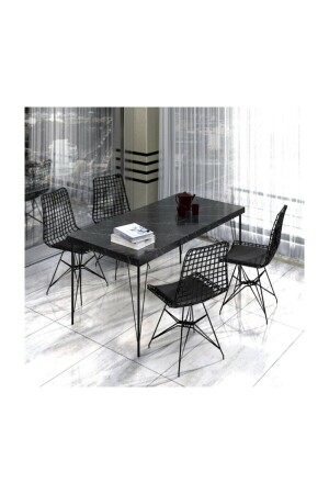 طاولة الطعام MNZ طاولة المطبخ الأسود الرخام مع مقاعد الأسلاك ل 4 أشخاص