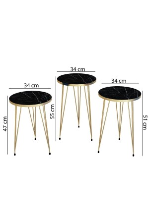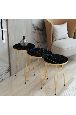 طاولة العشب الثلاثة ذات النمط من الرخام الأسود MNZ ، طاولة العشب السوداء ، طاولة العشب السوداء Set Premium Gold Nesting Table
