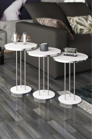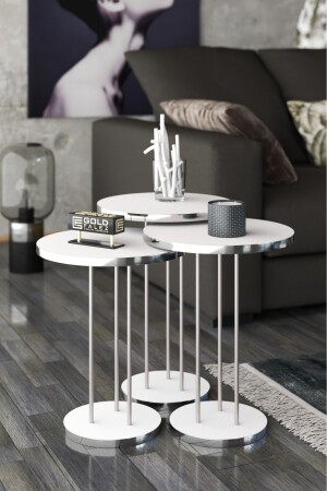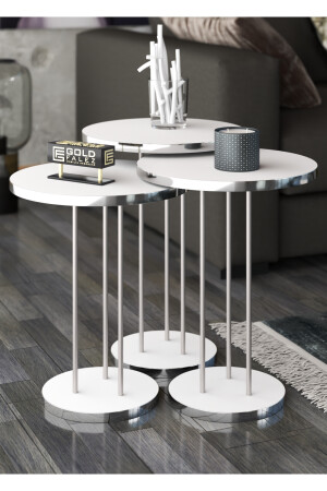 MNZ-Yagmur 3 قطع طاولة قهوة تعويض الذهب الأبيض 257T-T1