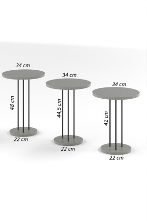 مقاسات منتج MNZ: · جميع الطاولات العلوية هي قطرها 34 · جميع صناديق السفلي: 22 قطر · ارتفاع قدم · قدم طويل: 48 سم • قدم متوسط: 45 سم
