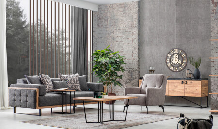 Monza İkili Sehpa Füme Cam - Siyah Mdf 562021