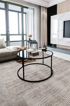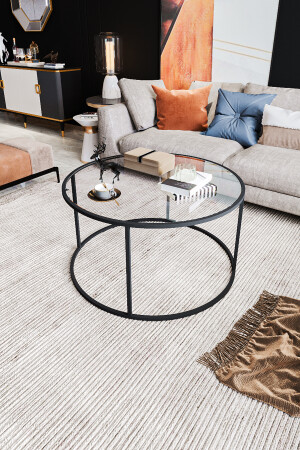MNZ-Monza طاولة قهوة مزدوجة زجاج مدخن / MDF أسود 562021