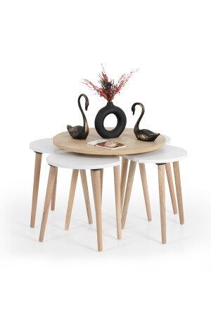 طاولة القهوة من طراز MNZ / طاولة القهوة المجموعة / طاولة القهوة المجموعة / 5 قطع / فلورا بيسا (OAK-WHITE) FLRH