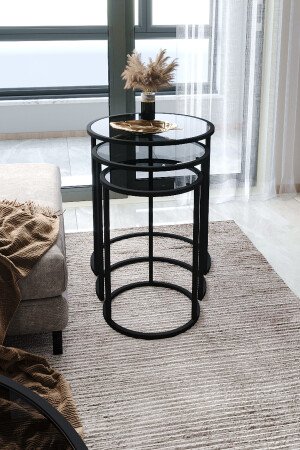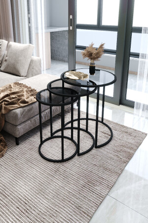 MNZ-Monza طاولة قهوة مزدوجة زجاج مدخن / MDF أسود 562021