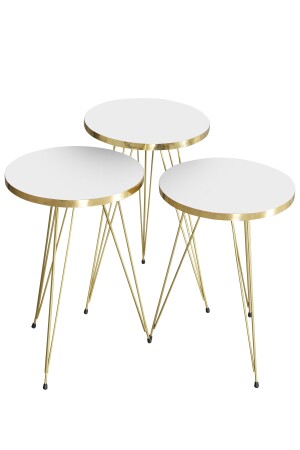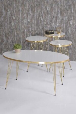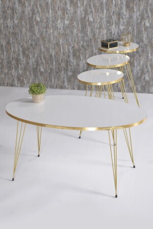 طاولة القهوة و طاولة القهوة من طراز MNZ-Nesting White Ellipse Set Wire Leg Gold FMA2600