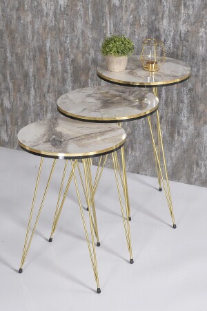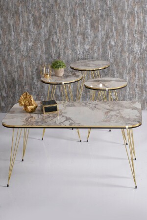 طاولة القهوة MNZ-Nesting و طاولة القهوة Kr Set Gold Double Efes Tel FMA2027
