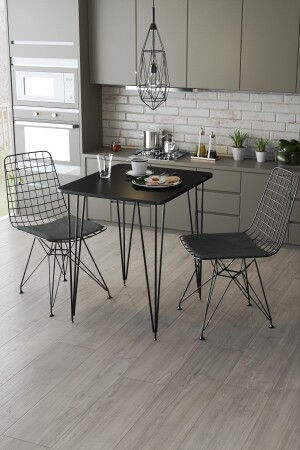 4 Adet Bar Sandalyesi Bar Masası Takımı - Siyah Mermer Desen Masa