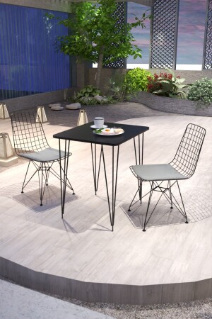 طاولة بالكون من المنتج (MNZ-Mutak) طاولة بالكون من المرمور الأسود نمط 2 قطع مقاعد الأسلاك