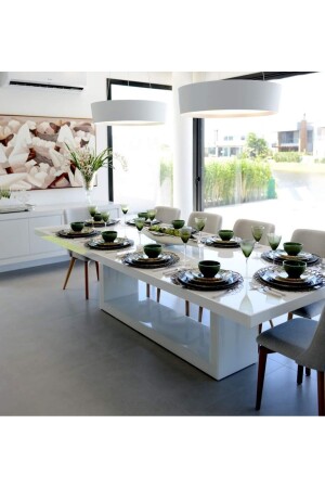 طاولة تناول الطعام من اللاكار الأبيض بدون مقاعد فاخرة 240 × 100 ارتفاع 77 سم
