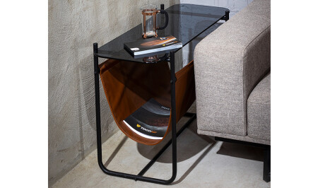 Ecol Gold Metal Zigon Sehpa Siyah Kırılmaz Cam ECOL0003
