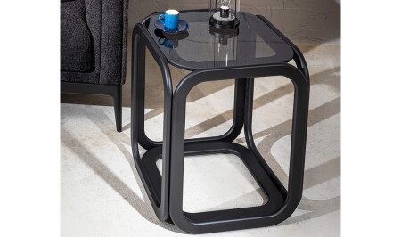 Ecol Gold Metal Zigon Sehpa Siyah Kırılmaz Cam ECOL0003