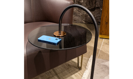 Ecol Gold Metal Zigon Sehpa Siyah Kırılmaz Cam ECOL0003