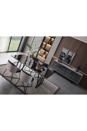 محتوى منتج MNZ: 1 طاولة الطعام حجم الطاولة: 200x100 سم المنتج مصنوع من MDF مطبوح بالكامل. يمكنك اختيار سطح الطاولة كMDF عادية مع أو بدون مرآ