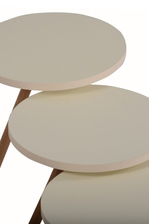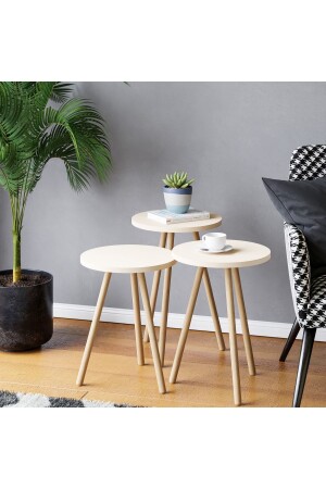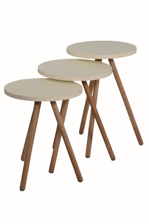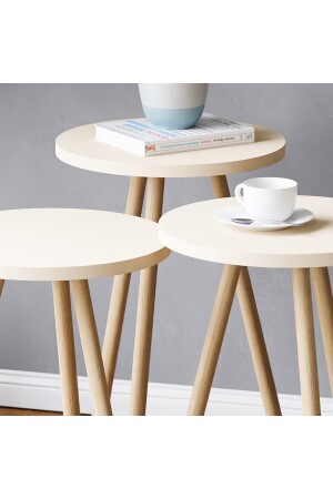 طاولة قهوة ثلاثية العش مع ساقي خشبية ، تصميم كرة البستيل ، كريم