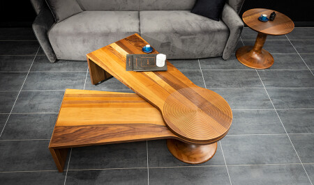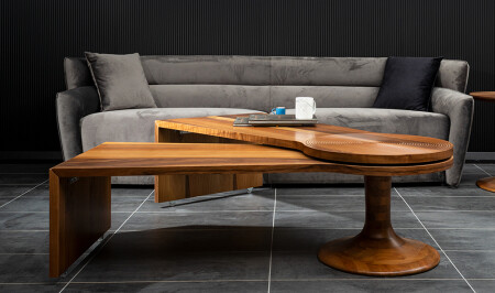 MNZ-Monza طاولة قهوة مزدوجة زجاج مدخن / MDF أسود 562021